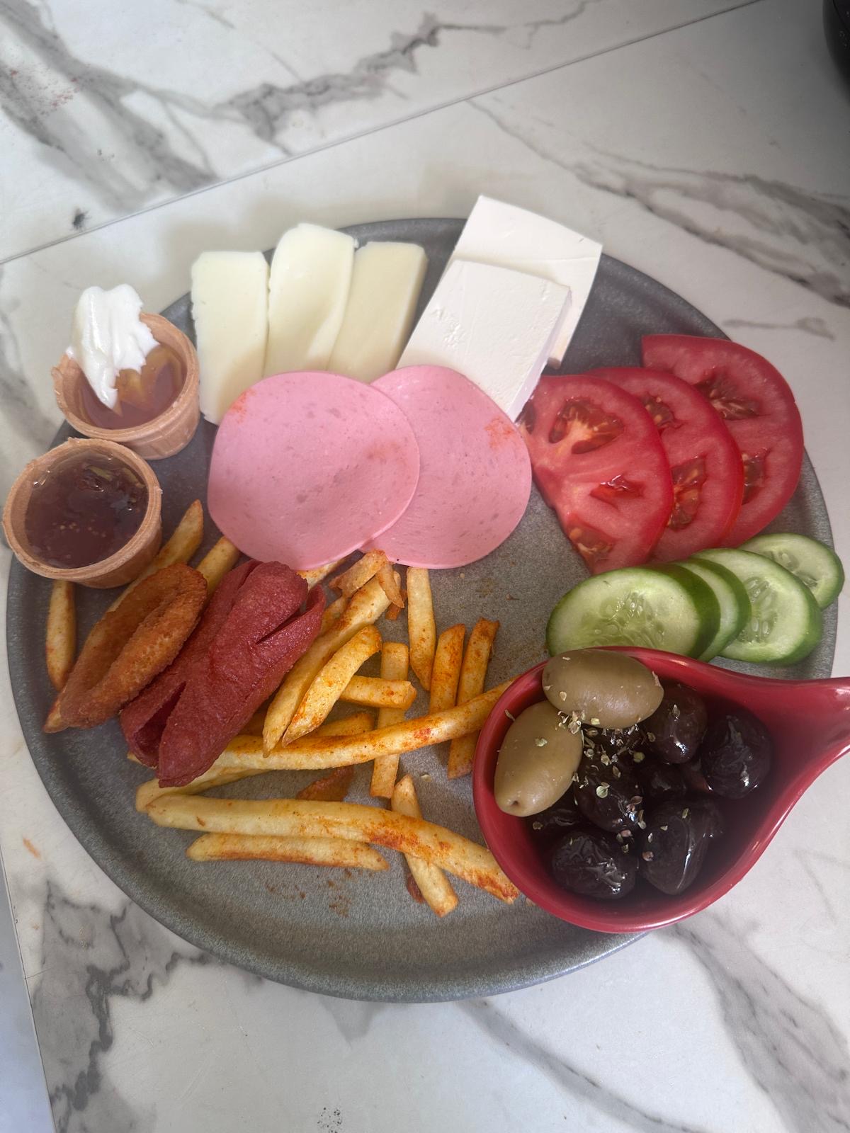 Sucuk, salam, kaşar, ketçap, mayonez.